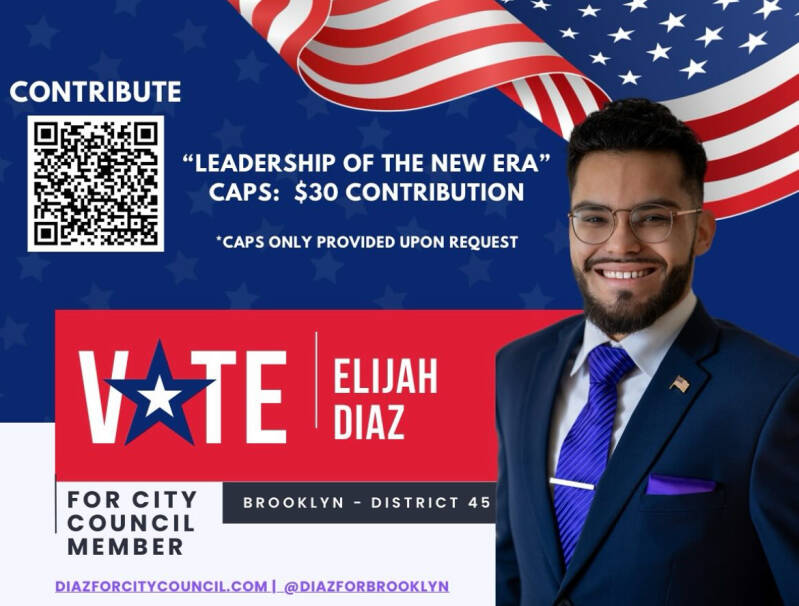 At just 23 years old, Elijah Diaz made history as one of the youngest major party candidates for city council in Brooklyn’s District 45. Running on the Republican and Conservative Party lines in the 2025 New York City Council election, he campaigned on a platform focused on small business support, public safety, education, and local accountability. (DIAZ FOR CITY COUNCIL)